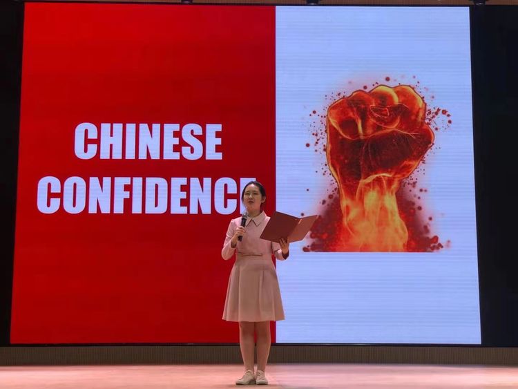学习外语(英语)是为了获取文化知识,理解文化内涵,形成正确的价值观,坚定文化自信,形成自尊、自信、自强的良好品格,具备一定的跨文化沟通和传播中华文化的能力。为了培养同学们学以致用的能力, 泰安一中新校区举办了以“坚定文化自信 传播中国声音”为主题的英语演讲大赛。